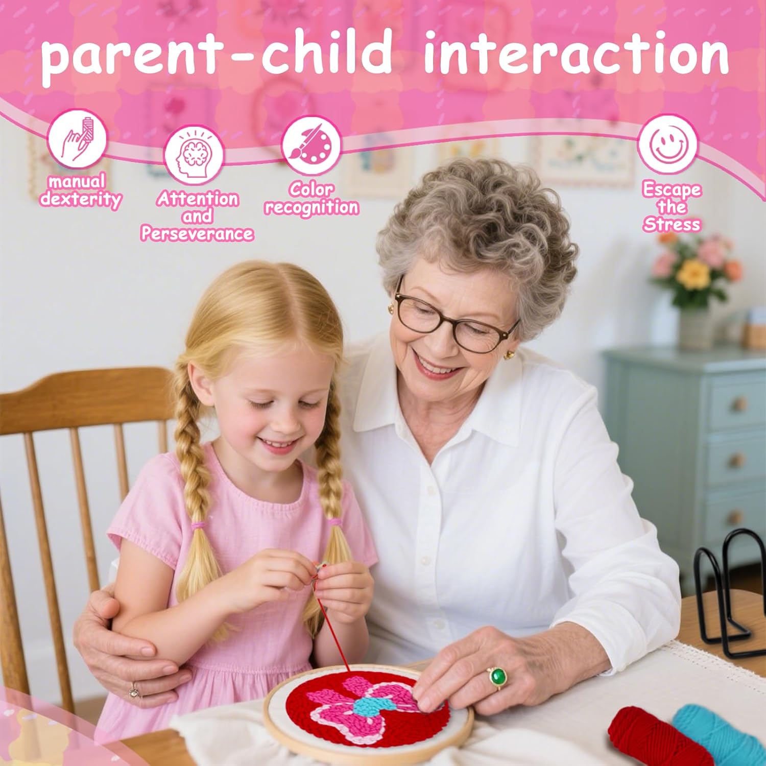 Each set includes 50 colorful cross-stitch threads, 20 thread winders, and 1 pack of needles — everything you need for a fun and organized stitching experience!