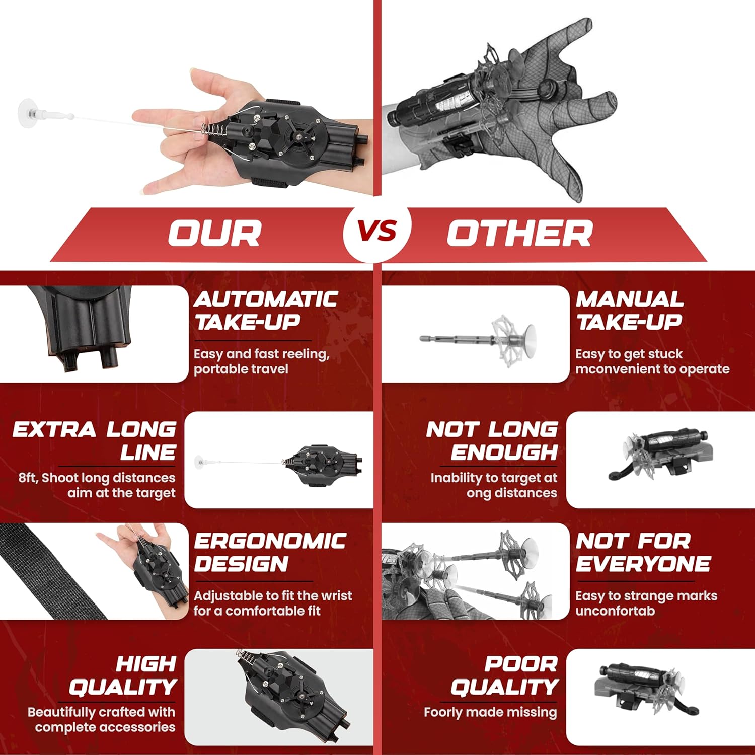 🔧 Durable & Reliable: Unlike fragile 3D-printed versions, our Web Shooter has undergone rigorous structural optimization and durability tests. This guarantees stability, reliability, and cost-effectiveness, making it a perfect gift for little heroes!