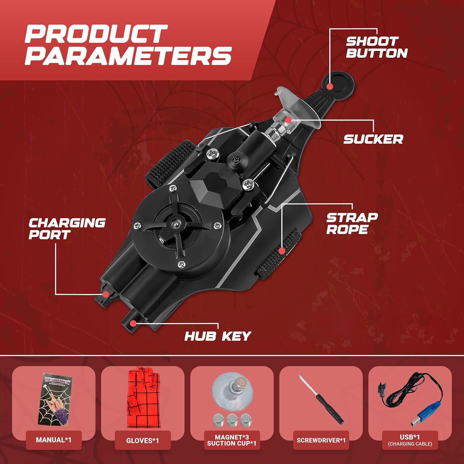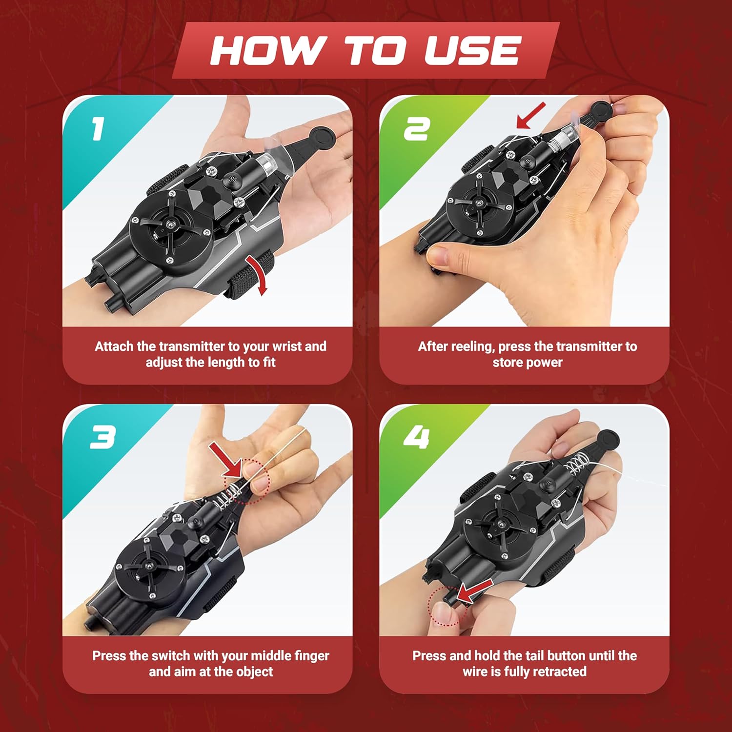 🌈 Adjustable Design: The web shooter features an adjustable strap, allowing it to fit comfortably on various wrist sizes. Perfect for kids of different ages!